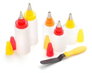 Instant fun for the whole family - kids and adults - with professional quality results. The Cookie and Cupcake Decorating Set from Kuhn Rikon has everything you need to decorate cookies, cupcakes and cakes. 4 Decorating Bottles for different color icings, 9 interchangeable decorating tips and one frosting spatula.