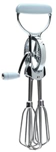An old-fashioned hand beater comes in handy even if a kitchen is equipped with electric beaters and mixers. Sometimes the chore is too small or the need too urgent to bother with electric cords and elaborate cleanup. When those times arrive--beating eggs, blending pancake batter, whipping cream or egg whites--this sturdy tool is just the ticket. Its beaters are heavy-duty, 18/10 stainless steel, so they won't interact with acidic foods. The handle and gear are polished aluminum, and both grips are tough plastic. Dishwasher-safe. --Fred Brack